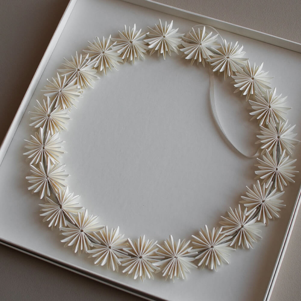 Paper flake är en dekorativ julkrans i papper från DBKD. Kransen är handgjord och formgiven av designern Karin Dahlin Gunterberg. Häng upp den på din favoritplats i hemmet och låt dess charm förhöja julstämningen.