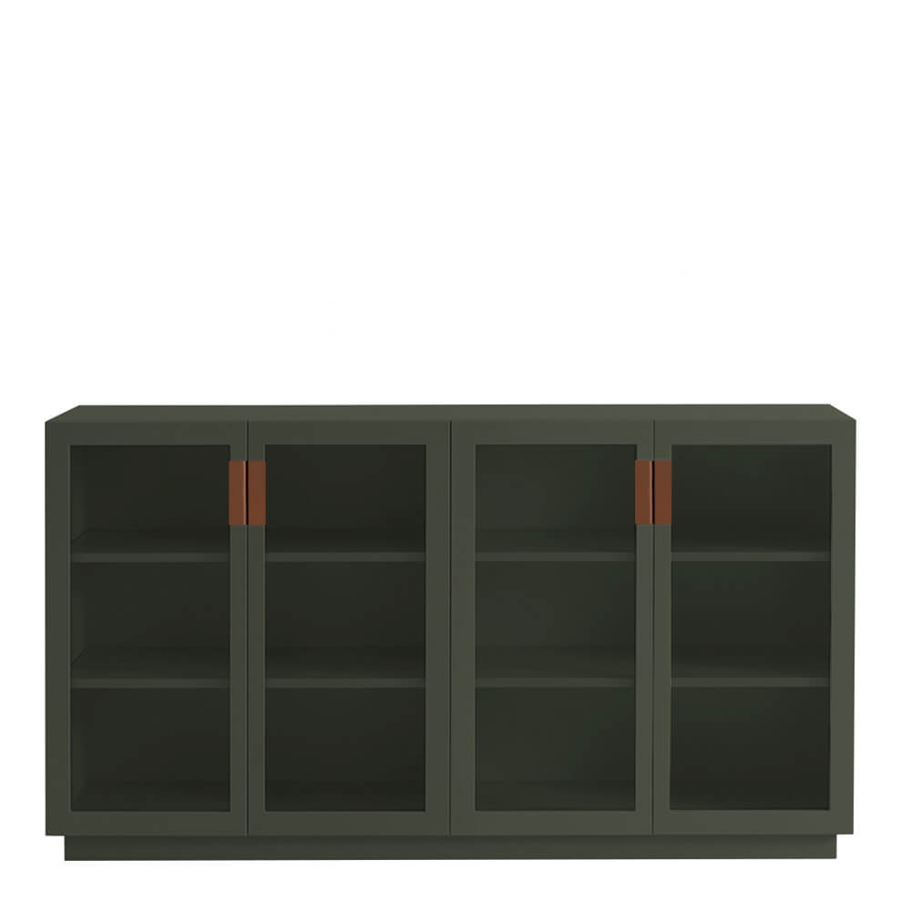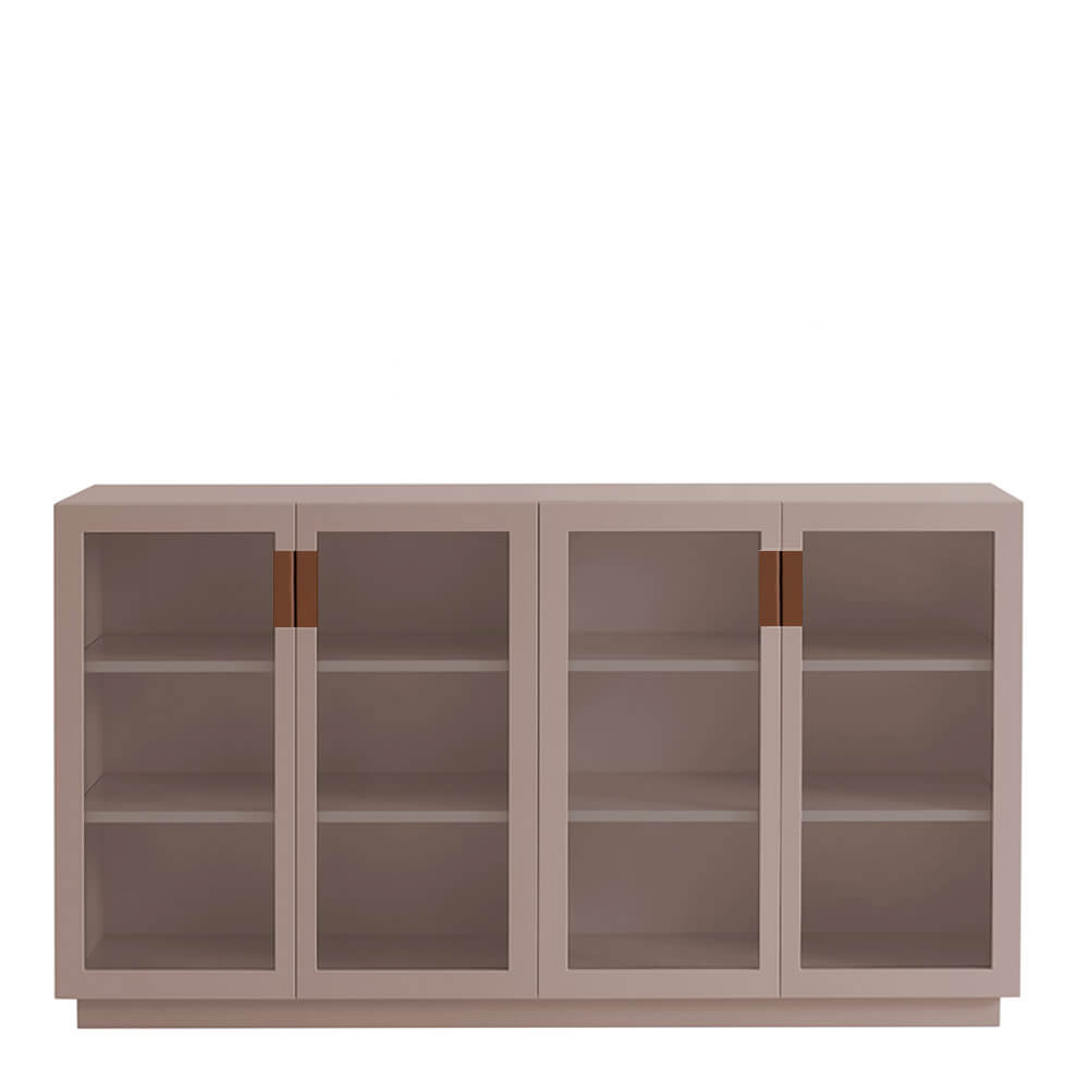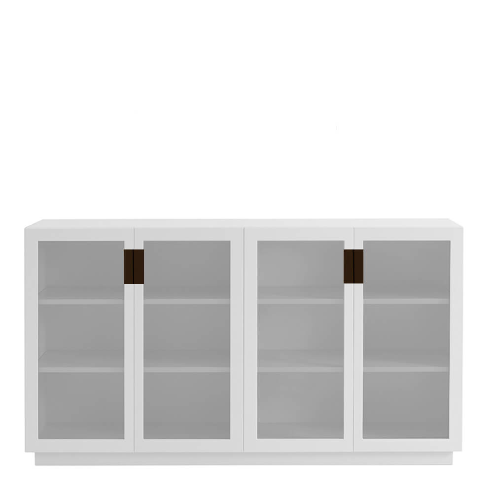 Frame 160 Medium är en skänk med glasdörrar formgiven av designerduon Anya Sebton och Eva Lilja Löwenhielm för ASPLUND 2014. Vitrinskåpet är tillverkat i lackerad MDF med fällbara dörrar i glas och handtag i tvinnat naturläder. Två lackade hyllor ingår. Tillverkas i Sverige.
