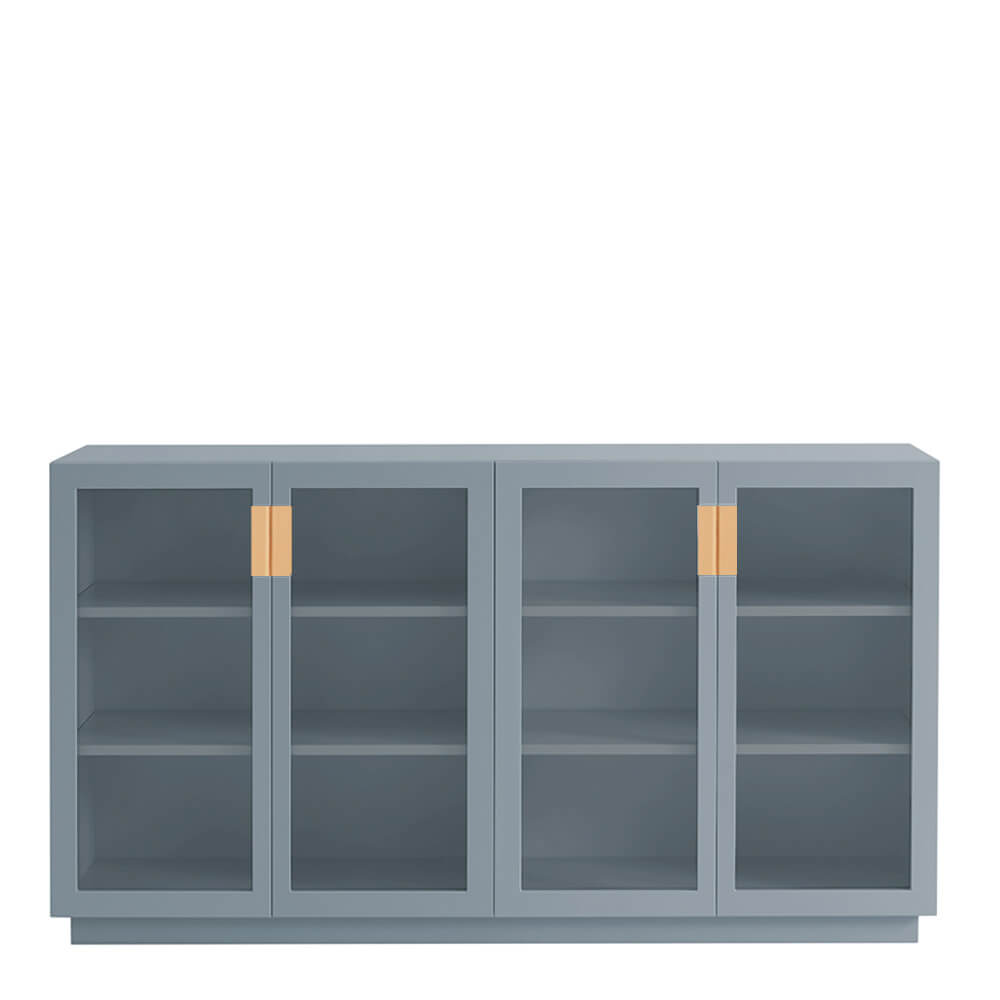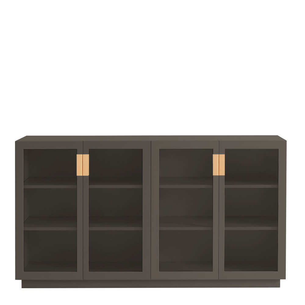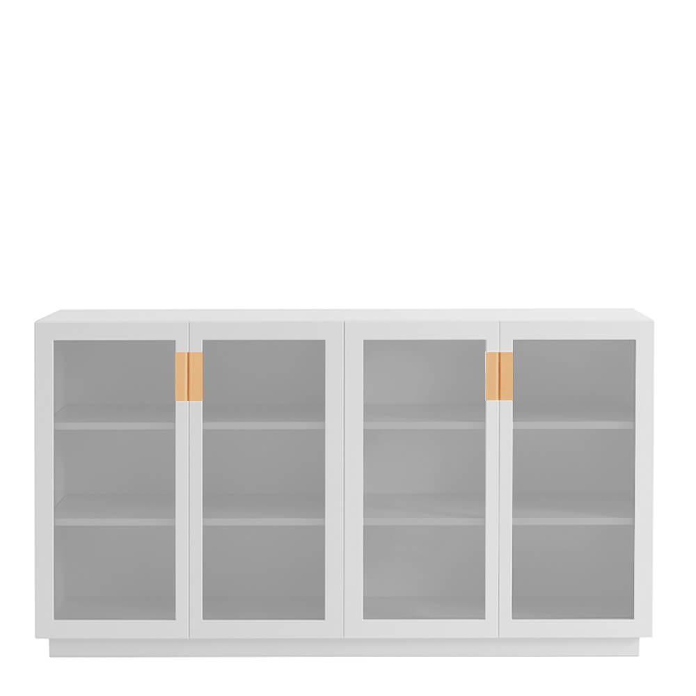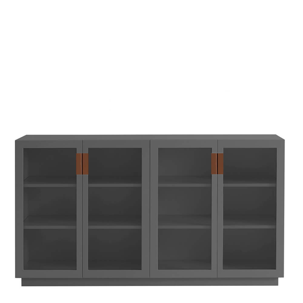 Frame 160 Medium är en skänk med glasdörrar formgiven av designerduon Anya Sebton och Eva Lilja Löwenhielm för ASPLUND 2014. Vitrinskåpet är tillverkat i lackerad MDF med fällbara dörrar i glas och handtag i tvinnat naturläder. Två lackade hyllor ingår. Tillverkas i Sverige.