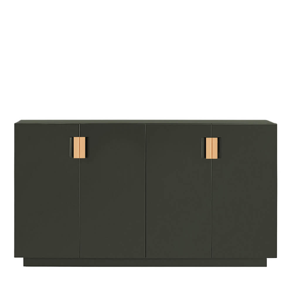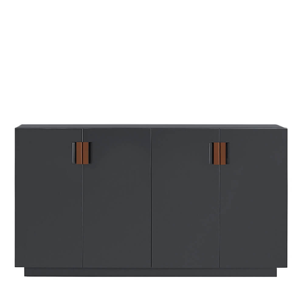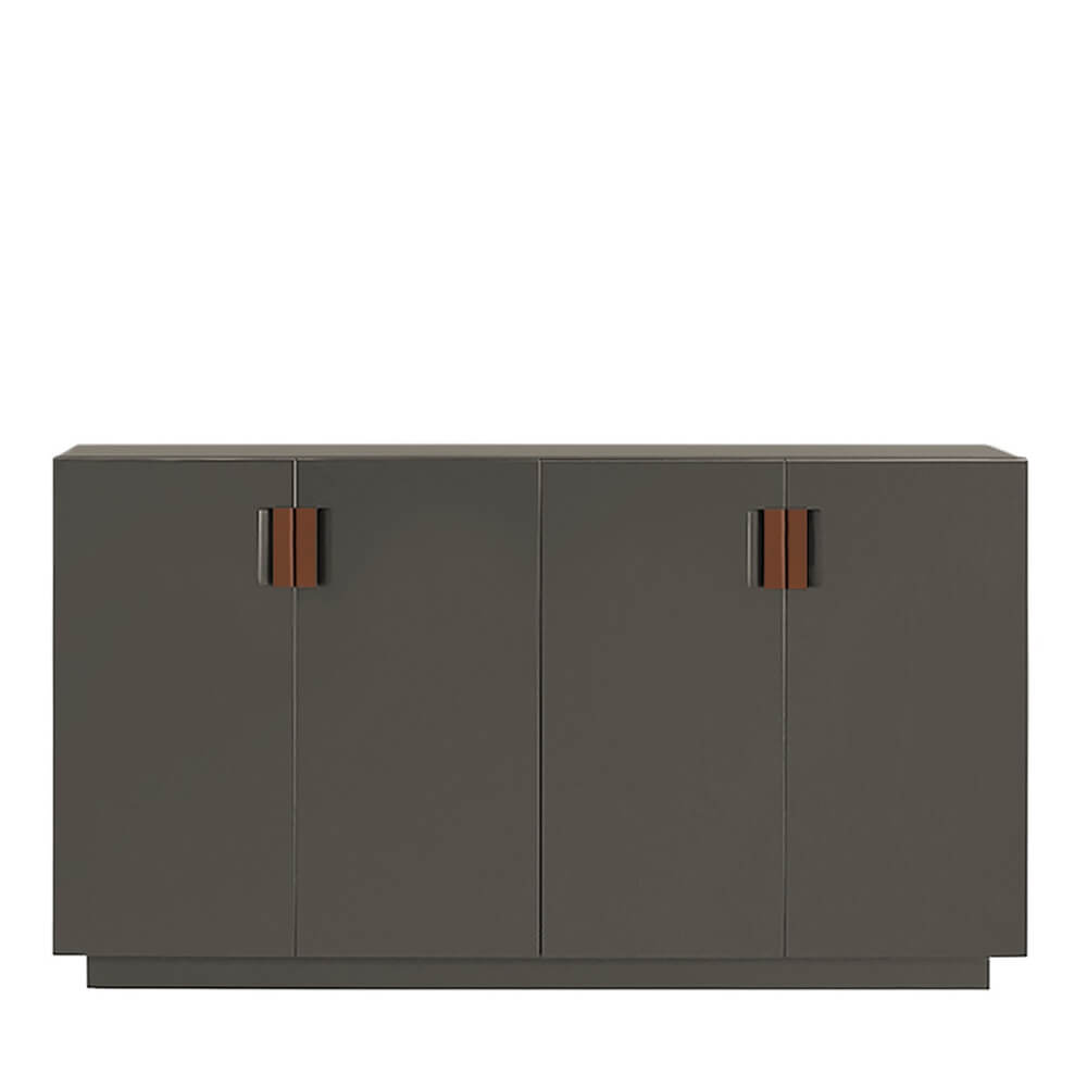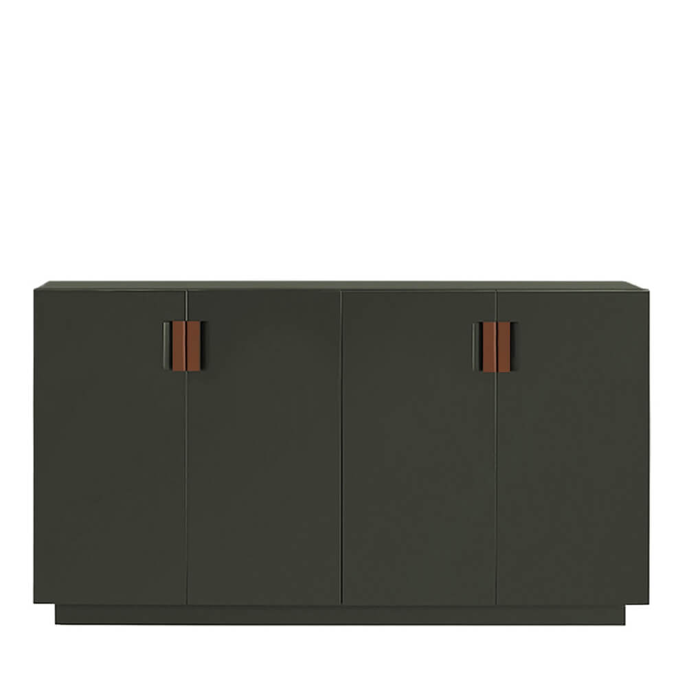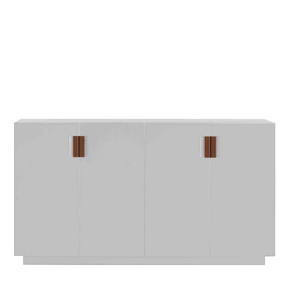Frame 160 Medium är en elegant skänk formgiven av designerduon Anya Sebton och Eva Lilja Löwenhielm för ASPLUND 2014. Skåpet är tillverkat i lackerad MDF med fällbara dörrar och handtag i tvinnat naturläder. Två lackade hyllor inuti. Tillverkas i Sverige.