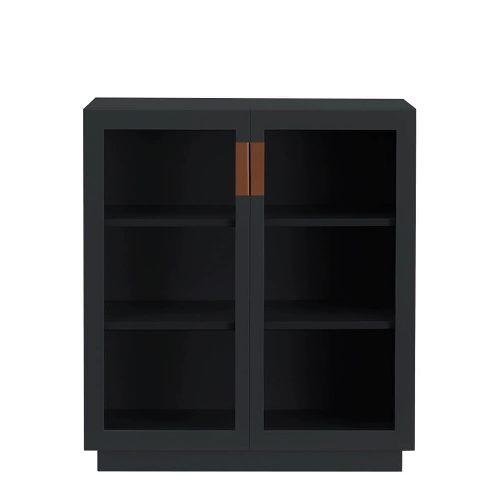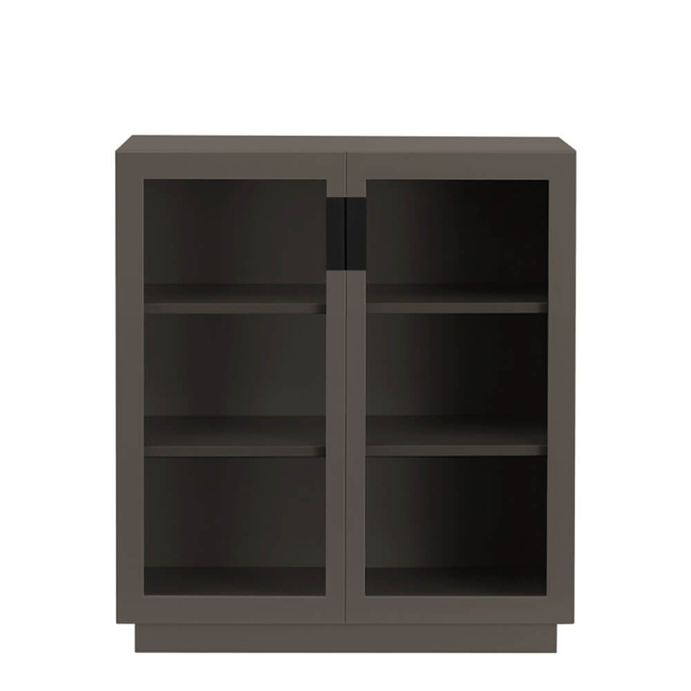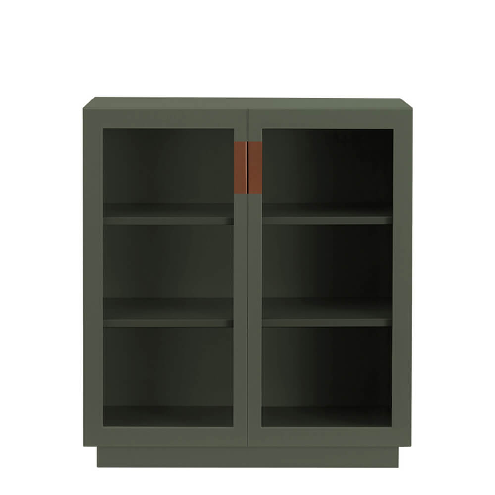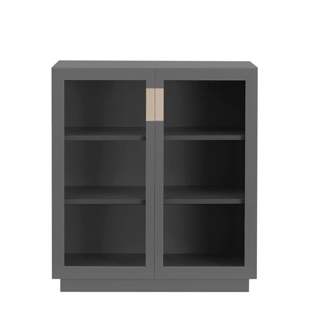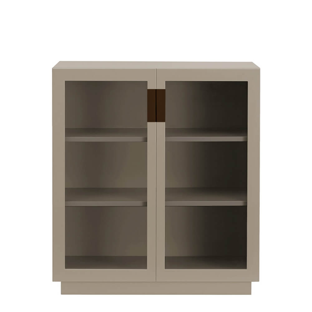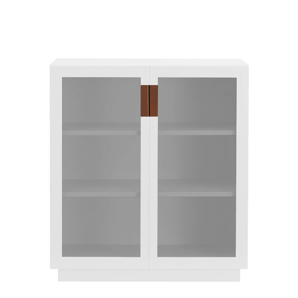 Frame 180 Medium är ett vitrinskåp formgivet av designerduon Anya Sebton och Eva Lilja Löwenhielm för ASPLUND Collection 2017. Skåpet är tillverkat i lackerad MDF med fällbara dörrar i glas och handtag i tvinnat naturläder. Två lackade hyllor inuti.