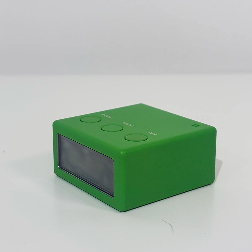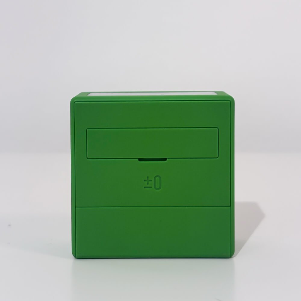 Alarmklocka ZZT-R020 i grönt designad av den prisbelönte japanska designern Naoto Fukasawa för Plus Minus Zero. ZZT-R020 lanserades 2006 som en del av Plus Minus Zeros ikoniska 2.5R-serie. Serien omfattade både analoga och digitala väckarklockor, en timer samt ett termo-hygrometerinstrument – samtliga förenade av samma mjukt avrundade formspråk.