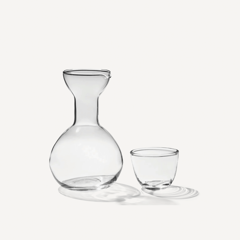 Pinho Carafe är en glaskaraff med tillhörande glas formgiven av Linnea Ek Blæhrför Form & Refine.
