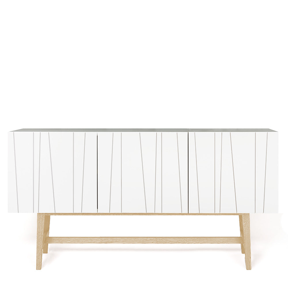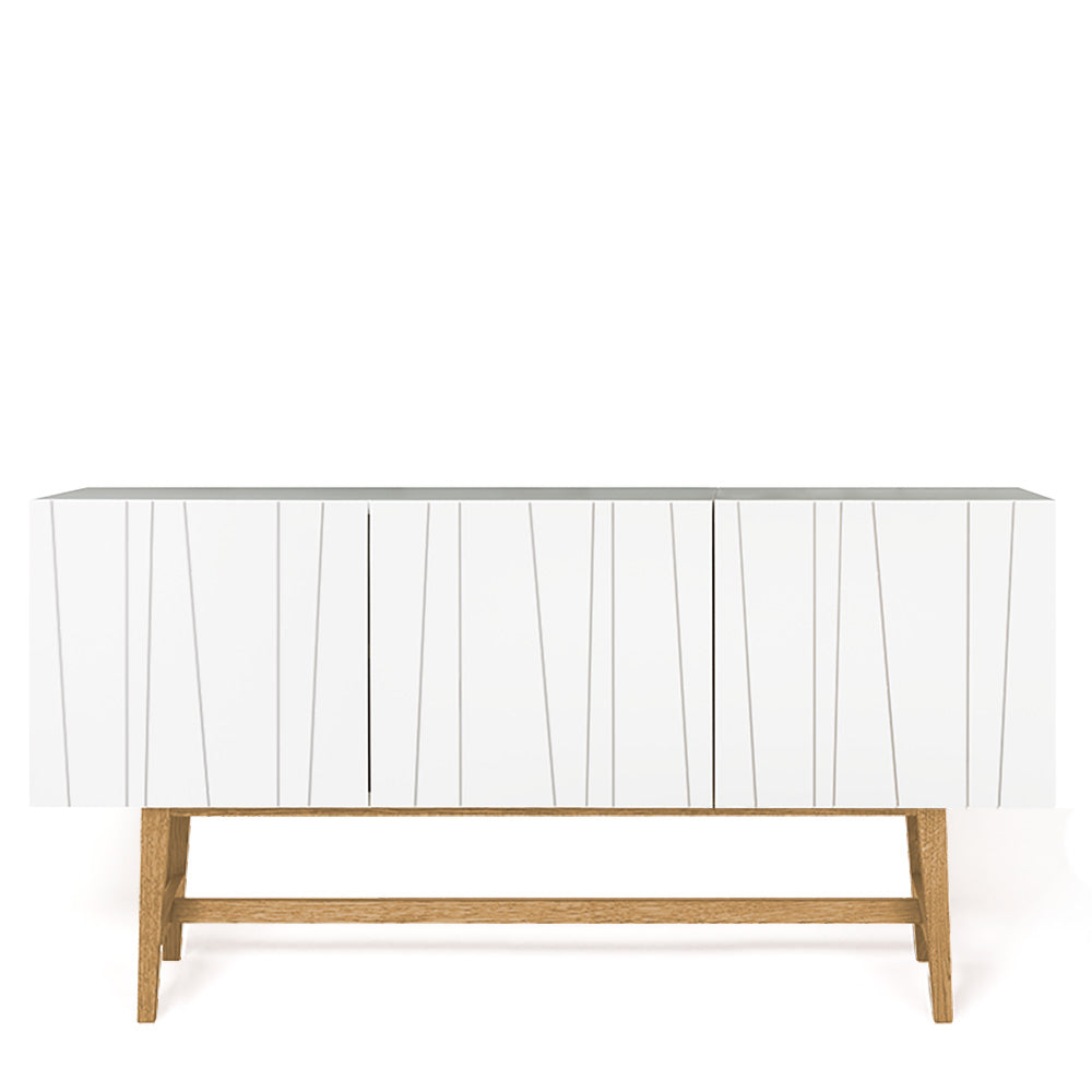 VASS 40:135 Stand är en skänk med tre dörrar formgiven av Claesson Koivisto Rune för ASPLUND Collection. Sideboardet finns i flera olika utföranden med ett skåp i lackerad MDF eller betsad ek och ben i massiv ek. Passar bra som TV-bänk eller mediamöbel. Tillverkas i Sverige.